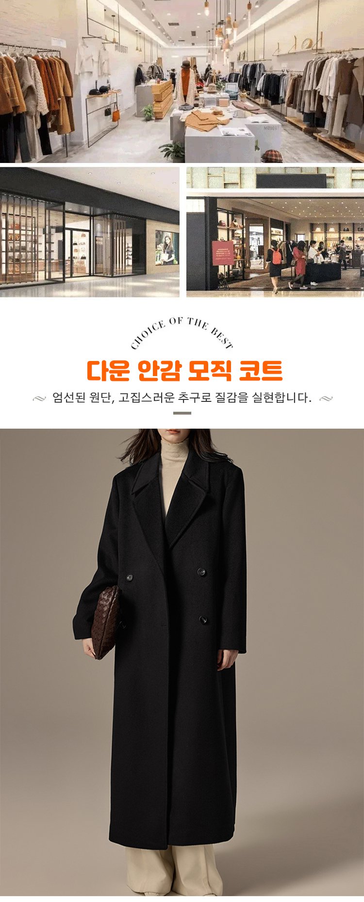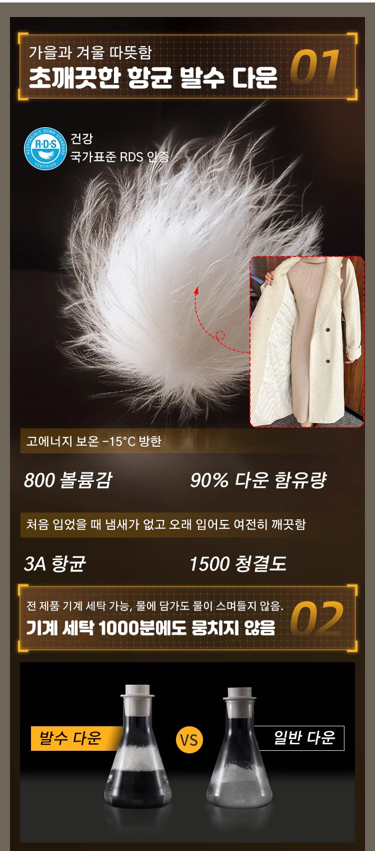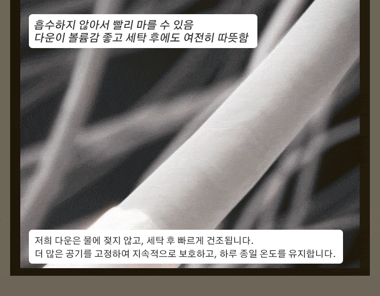 100% 호주산 울, 90% 화이트 구스다운 내장! 영하 30도에서도 따뜻하고 우아하게.